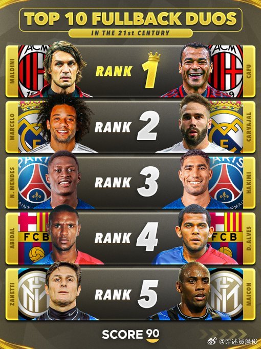 外媒评最强双边卫!詹俊:论实力第一组太强,欧冠荣誉第二组最多