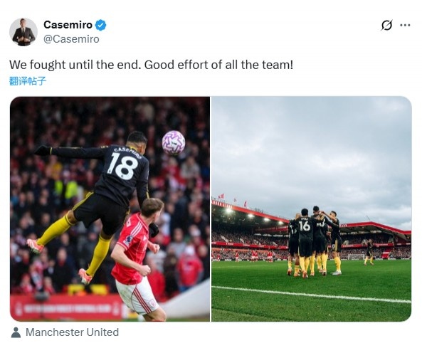 卡塞米罗社媒:我们战斗到了最后,全队都付出了很棒的努力