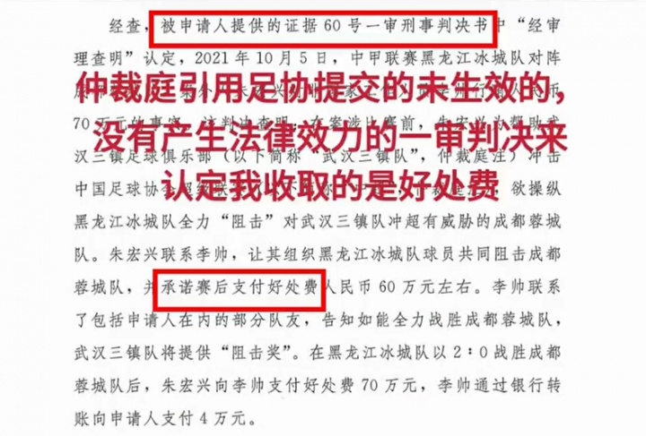 张浩:我现在公布一小部分证据,这个证据是足协在仲裁庭上恶意把踢假球的罪名强压在我头上的证据。大白话就是他认为我努力的踢赛事 ,所以操纵了赛事 。他认为在无关紧要的赛事 当中,运动活动 员不需要全力的去踢赛事 。