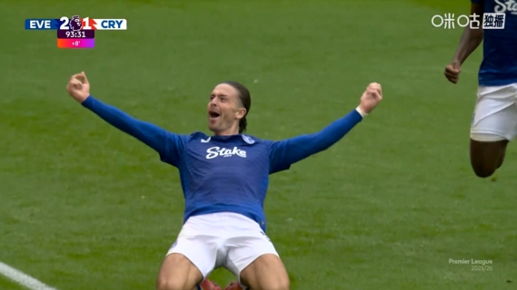 补时致胜球 !格拉利什第93分钟“被动”破门,埃弗顿2-1反超水晶宫