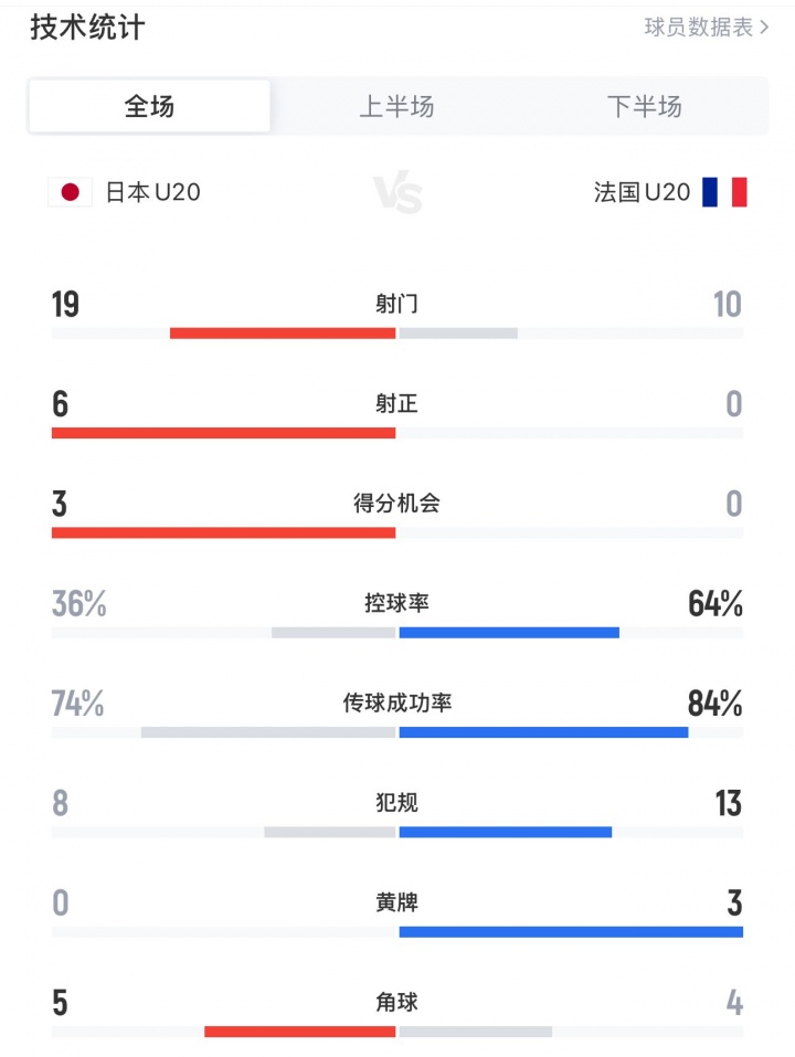 进延长赛 !日本U20常规时间0-0法国U20,日本狂轰19脚,法国0射正