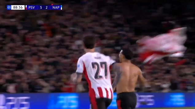 打花了!德里欧破门后脱衣疯狂庆祝 十人那不勒斯2-6追赶 埃因霍温
