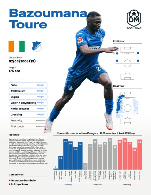 尽管图雷几个月前才加盟霍芬海姆,但据天空体育报道,他已经收到了冬季转会报价(尤其是来自英超职业联赛 的报价)。