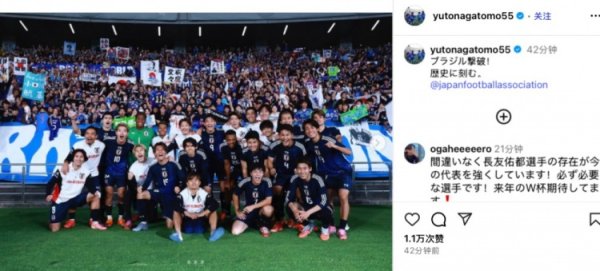 Bravo!长友佑都社媒庆祝:击败巴西队!今日将载入史册